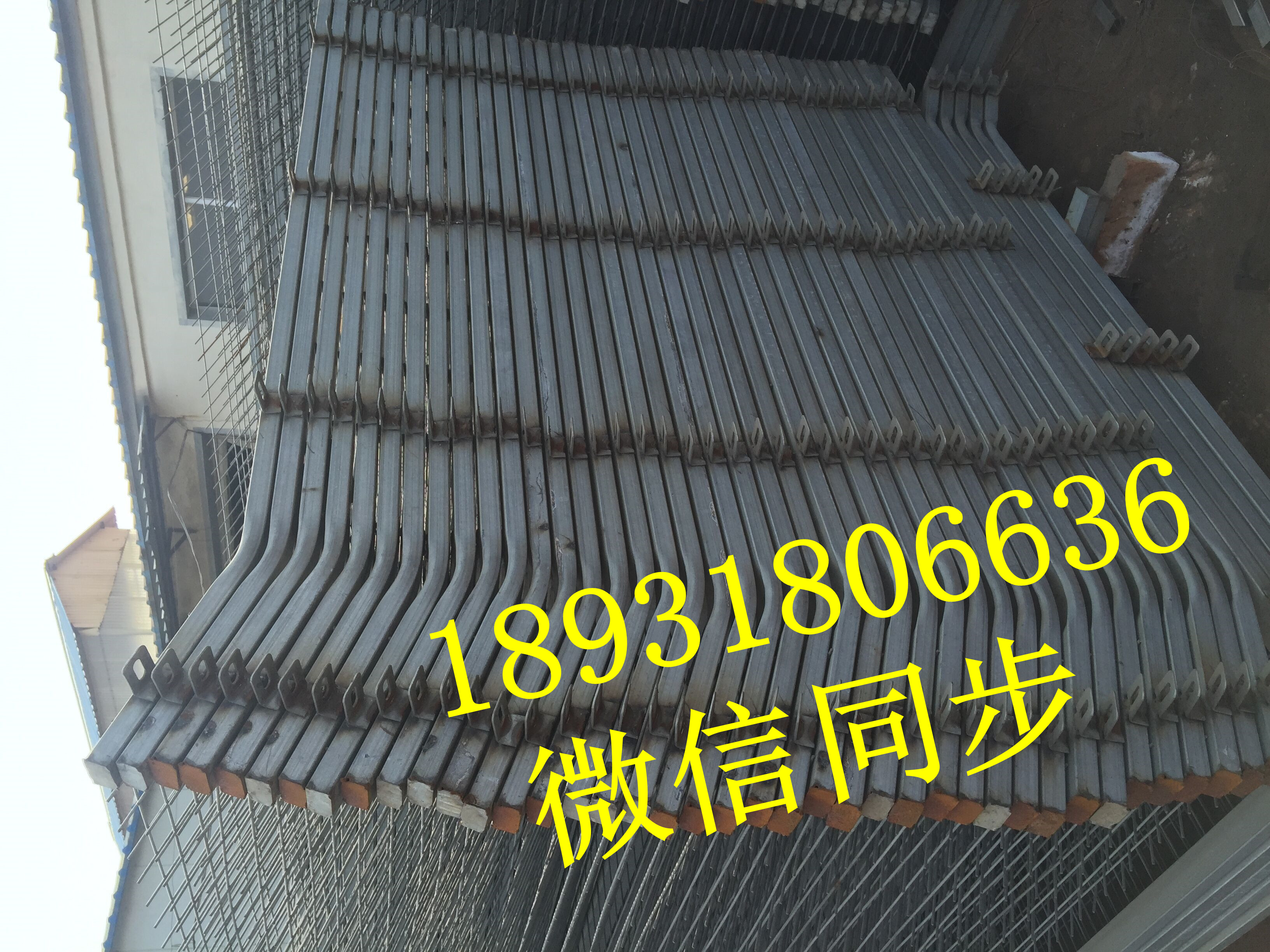金屬網(wǎng)片采Jfl0235短管邊框,規(guī)格30rrm×50mm,矩管厚度2.0mm:內(nèi)部網(wǎng)絲采用PB300 Φ6.5mm高線鋼絲冷拔加工,規(guī)格75mm×150mm(Φ4.Omm),上部向外折角30'',垂直高度300mm.